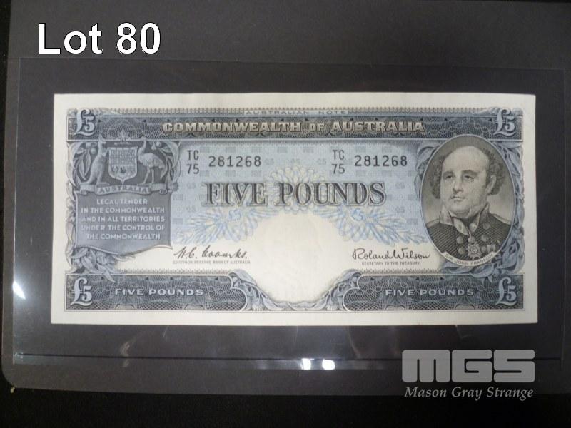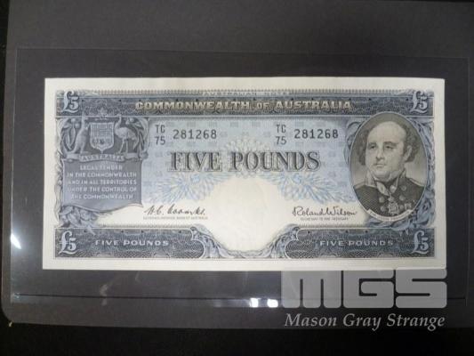 1960 5 POUND AUSTRALIAN NOTE COOMBS WILSON APPEARS UNC