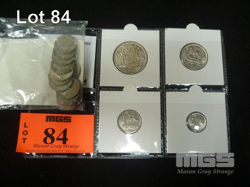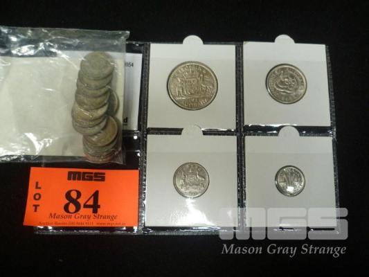 1944 AUSTRALIA, 4 COIN SET, THREEPENCE, SIXPENCE, SHILLING, FLORIN (EF-UNC) & BAG OF DINKUM CHRISTMAS SIXPENCES