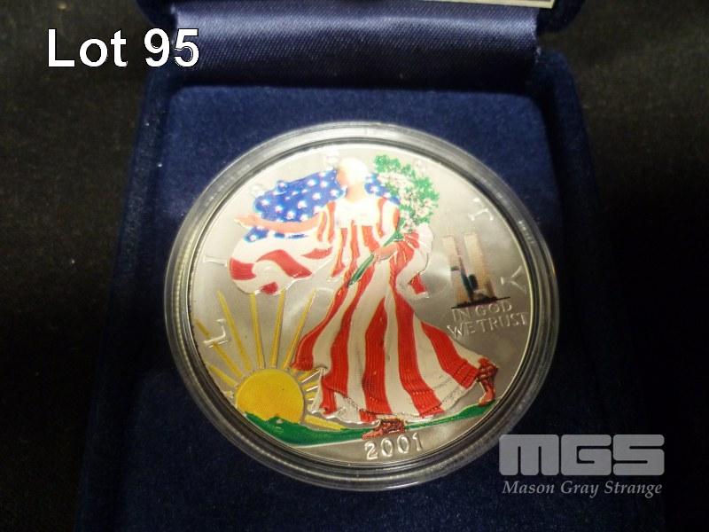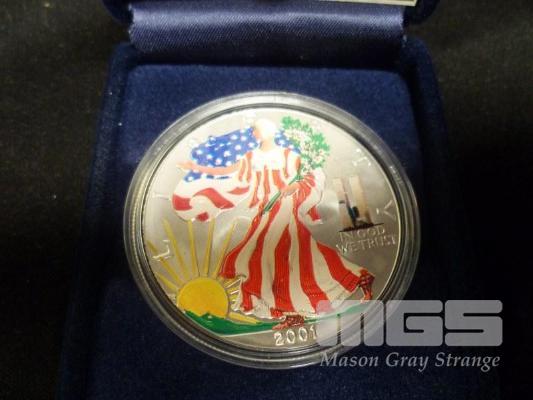 USA, 2001, COMMEMORATIVE, ONE DOLLAR SILVER PROOF COIN, 1oz FINE SILVER, 'SILVER EAGLE TWIN TOWER PRIVY'