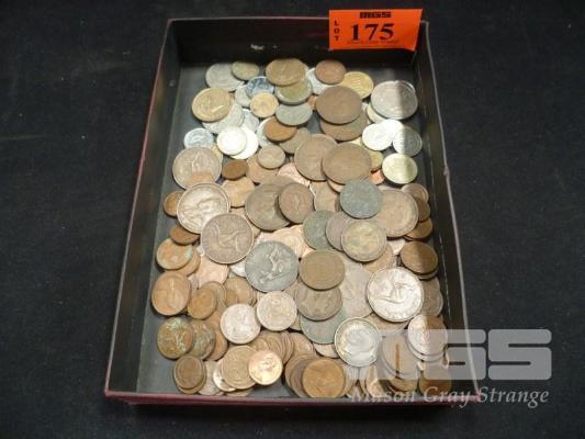 ASSORTED AUSTRALIAN PENNIES & HALF PENNIES, INTERNATIONAL CUURENCY & AUSTRALIAN 1 & 2 CENT PIECES