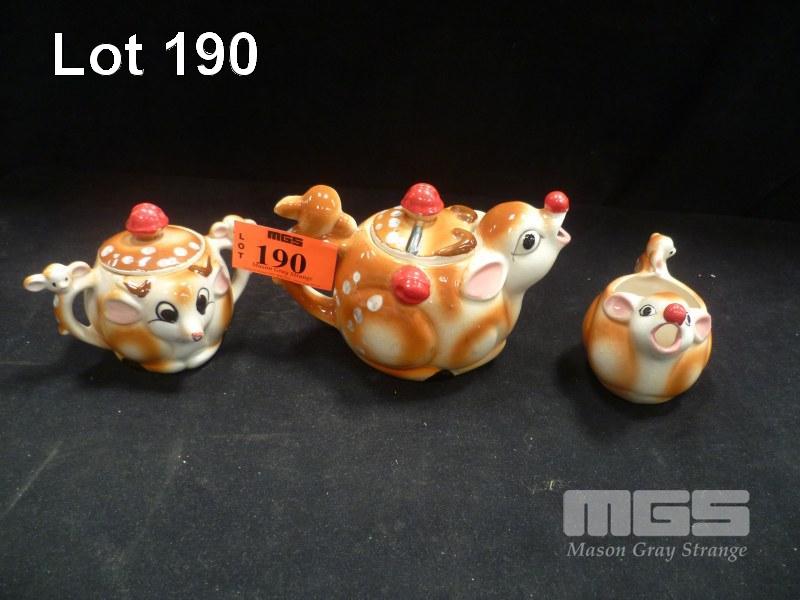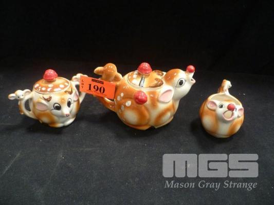 RUDOLPH THE RED NOSE RAINDEER TEA SERVICE, TEAPOT, SUGAR BOWL & CREAMER