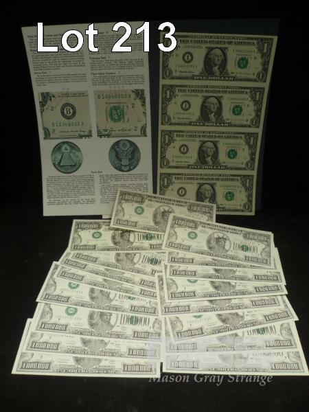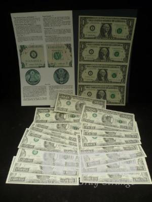 BUREAU OF ENGRAVING & PRINTING, FEDERAL RESERVE BANKNOTES, 4 X UNCUT USA $1 BANKNOTES & 20 X USA COMMEMORATIVE $1,000,000 BANKNOTES (NOT LEGAL TENDER)