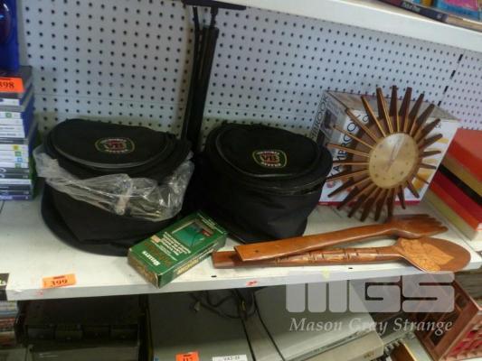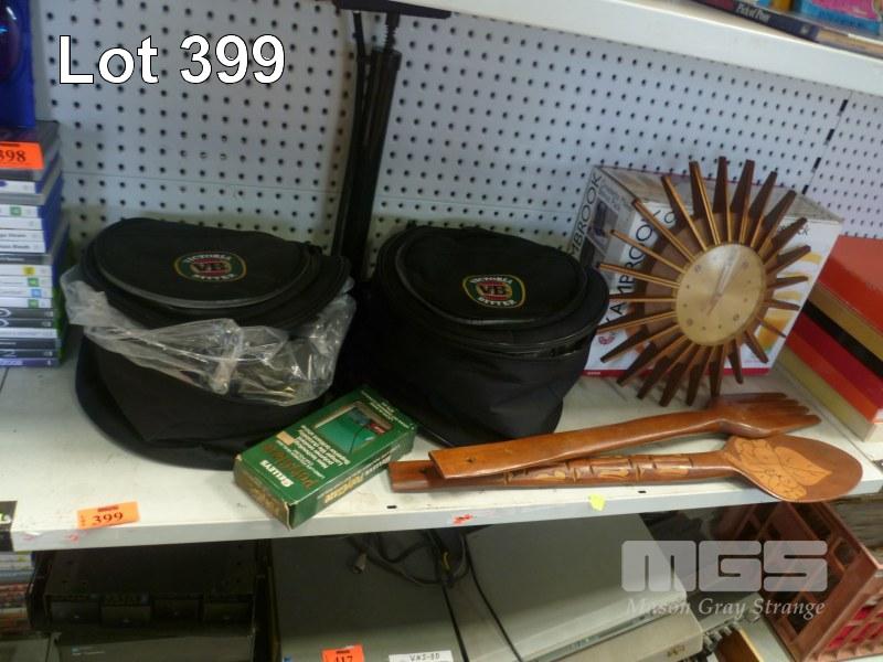 SMITHS STAR BURST CLOCK, VB COOLER BAGS, LARGE KNIFE AND FORK ETC