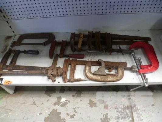 SHELF LOT VINTAGE G CLAMPS, ETC.