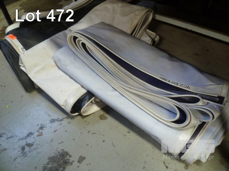 5 X ASSORTED HEAVY DUTY ADVERTISING TARPS. UNKNOWN SIZES