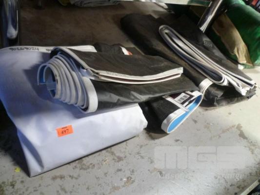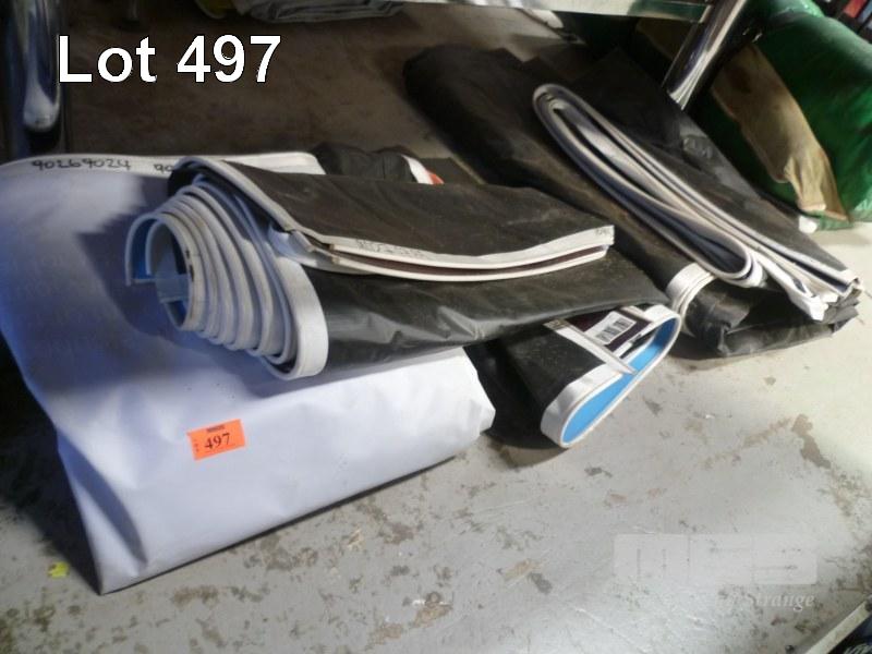 4 X ASSORTED HEAVY DUTY ADVERTISING TARPS. UNKNOWN SIZES