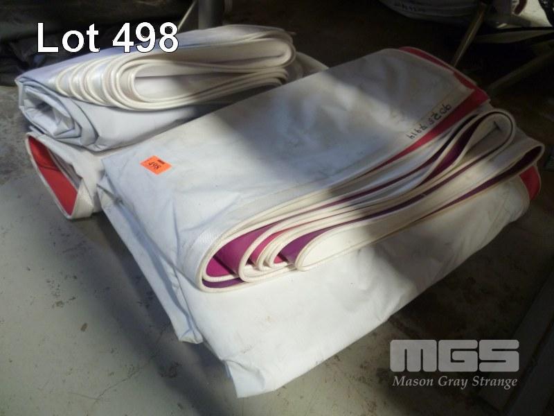 4 X ASSORTED HEAVY DUTY ADVERTISING TARPS. UNKNOWN SIZES
