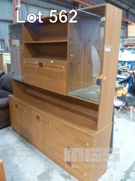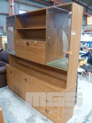 TIMBER LAMINATE WALL UNIT WITH GLASS DOORS, MIRROR BACK, COCKTAIL DOOR