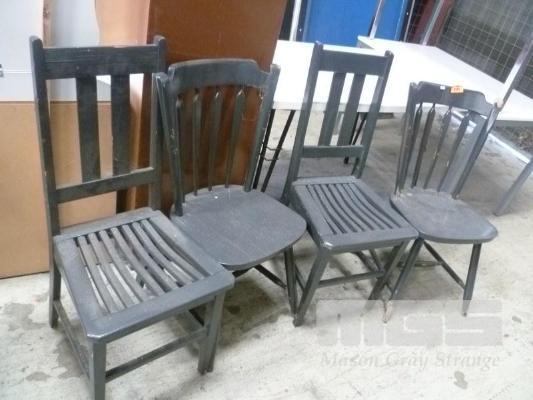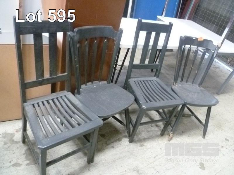 4 X DARK GREY PAINTED TIMBER DINING CHAIRS