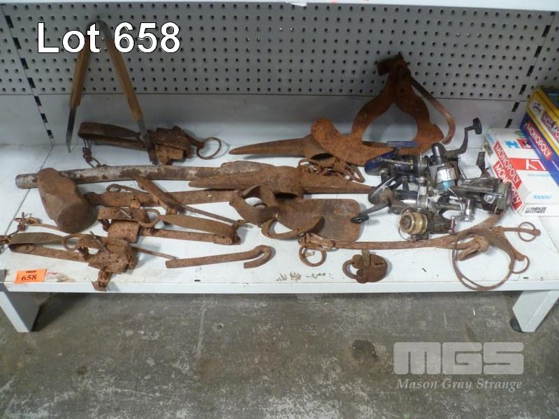 RABBIT TRAPS, HAMMERS, FISHING REELS, ETC.