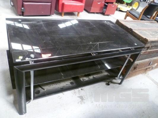 LOW LINE ENTERTAINMENT UNIT, METAL FRAME, 3 x GLASS SHELVES
