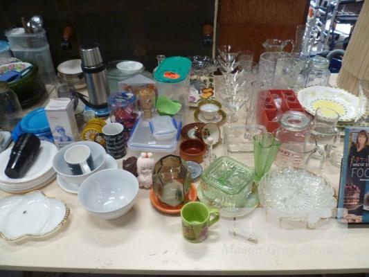 ASSORTED GLASSWARE, VASES, BOWLS, ETC. (1 x TABLE)