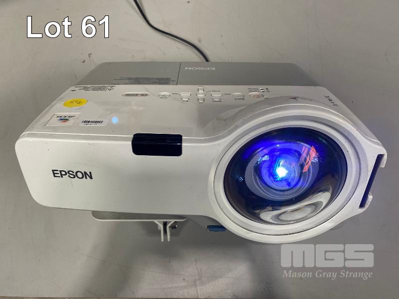 PROJECTOR, EPSON EB-410W SHORT-THROW 3LCD, 2,000 LUMENS, 698 HOURS (HIGH) SHOWING (NO REMOTE) WITH ELPMB24 WALL MOUNT BRACKET, ELPSP02 ACTIVE SPEAKERS (NO POWER SUPPLY)