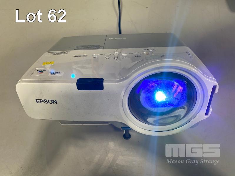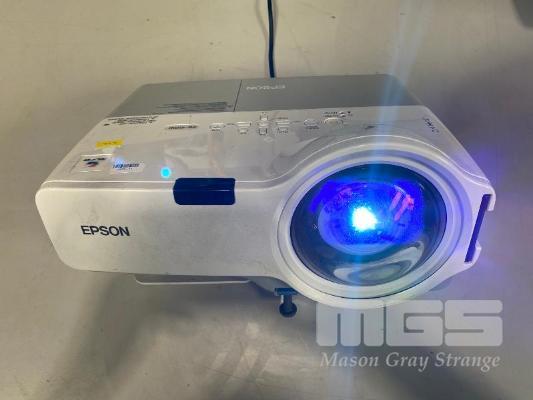PROJECTOR, EPSON EB-410W SHORT-THROW 3LCD, 2,000 LUMENS, 745 HOURS (HIGH) SHOWING (NO REMOTE) WITH ELPMB24 WALL MOUNT BRACKET, ELPSP02 ACTIVE SPEAKERS (NO POWER SUPPLY)