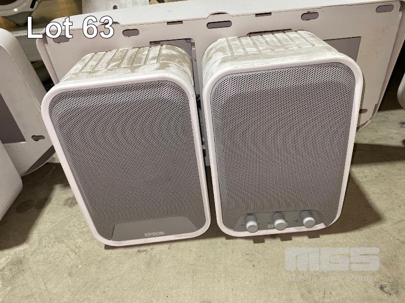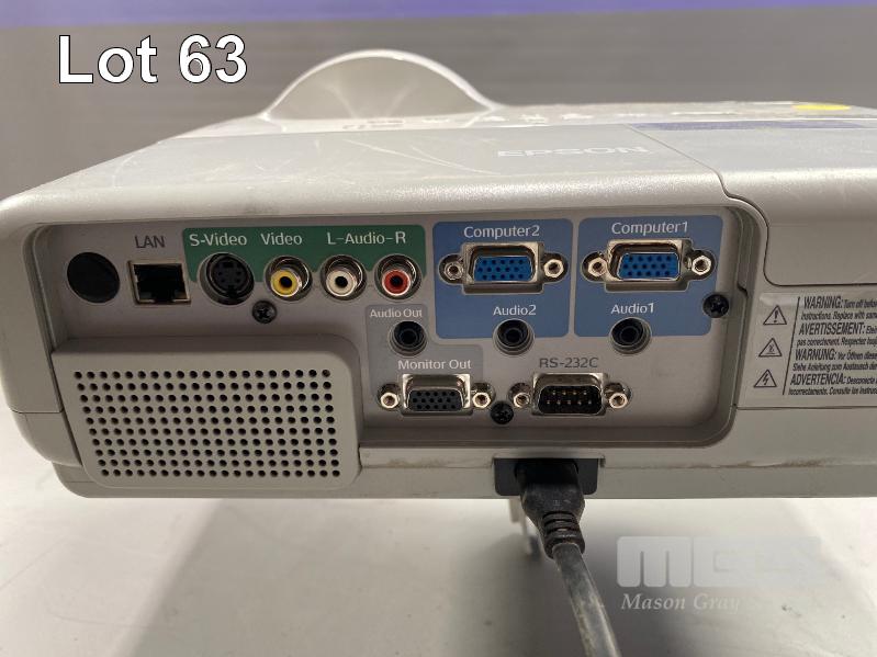 PROJECTOR, EPSON EB-410W SHORT-THROW 3LCD, 2,000 LUMENS, 913 HOURS (HIGH) & 46 HOURS (LOW) SHOWING (NO REMOTE) WITH ELPMB24 WALL MOUNT BRACKET, ELPSP02 ACTIVE SPEAKERS (NO POWER SUPPLY)