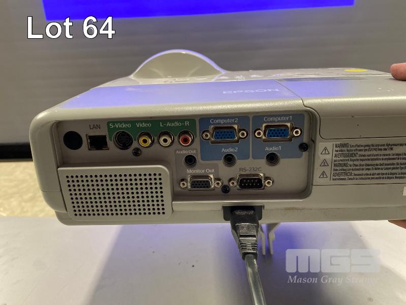 PROJECTOR, EPSON EB-410W SHORT-THROW 3LCD, 2,000 LUMENS, 2,423 HOURS (HIGH) SHOWING (NO REMOTE) WITH ELPMB24 WALL MOUNT BRACKET