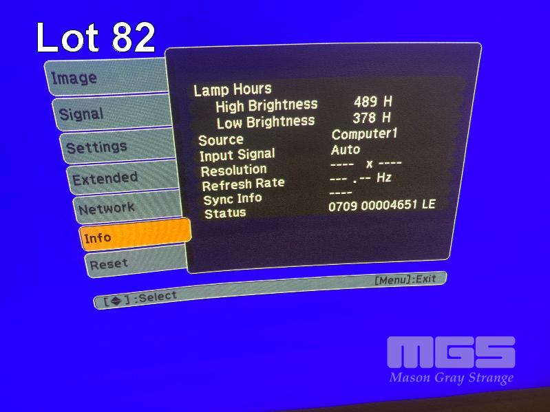 PROJECTOR, EPSON EMP-83H 3LCD, 2,200 LUMENS, 489 HOURS (HIGH) & 378 HOURS (LOW) SHOWING (NO REMOTE)
