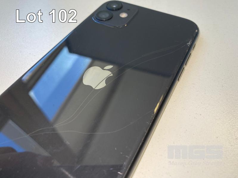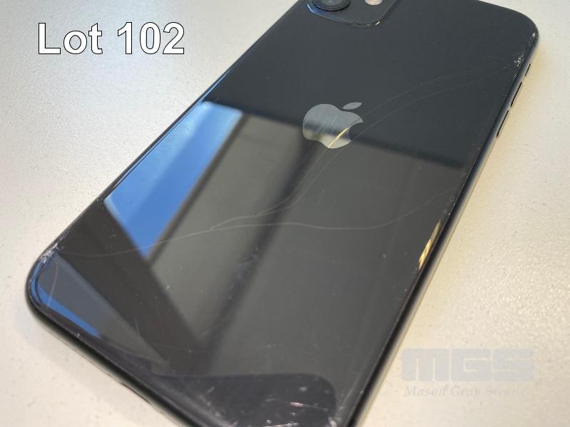 APPLE iPHONE 11, 128GB, BLACK, MODEL MWM02X/A (NO CHARGER, NO CABLE) (NOTE: DAMAGE TO BACK OF CASING) S/N:F4GCD33NN73D