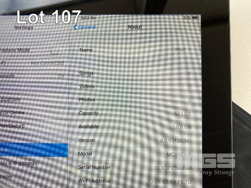 APPLE iPAD 2, 64GB, Wi-Fi, SPACE GREY, MODEL A1396 (NO CHARGER, NO CABLE) (NOTE: HAS ENGRAVING ON BACK) S/N:DLXGP21BDFJ0