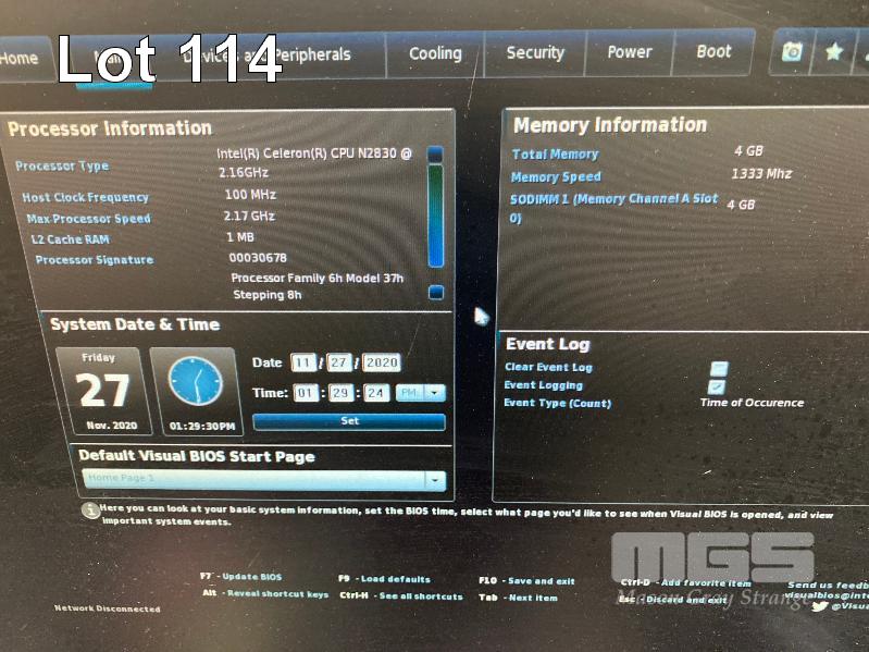 MINI PC, INTEL NUC, MODEL DN2820FYK, CELERON N2830 @ 2.16GHz, 4GB RAM, 120GB SSD & POWER SUPPLY