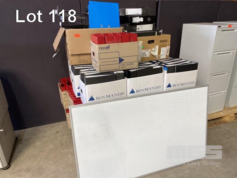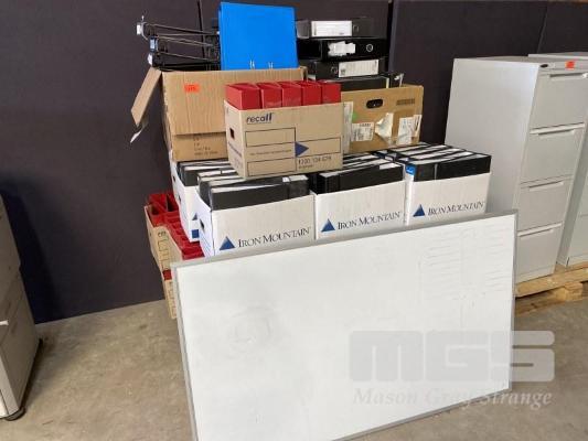 PALLET LOT OF LEVER ARCH FILES & WHITEBOARD
