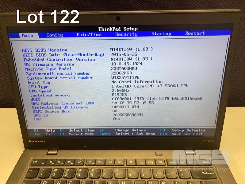 LAPTOP, LENOVO THINKPAD X1 CARBON (20BTA0SHAU), CORE i7 5600U (5TH GEN) @ 2.6GHz, 8GB DDR3 RAM, 256GB SSD, 14" WIDESCREEN (1920x1080), INTEL HD VIDEO, Wi-Fi, BLUETOOTH, WINDOWS 10 HOME INSTALLED & POWER SUPPLY S/N:R90GZX63
