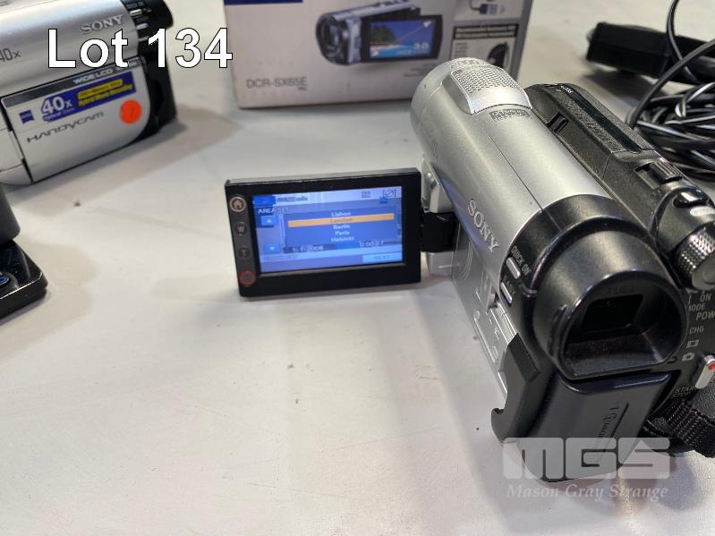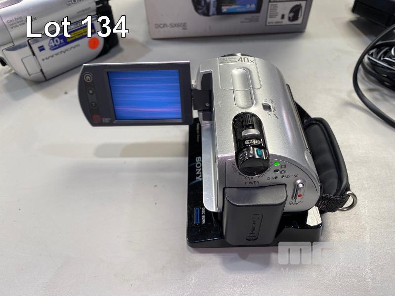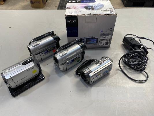 4 x SONY HANDYCAM VIDEO CAMERAS, 1 x POWER SUPPLY MODELS INC. DCR-SX65E, DCR-SR42 (LCD SCREEN ISSUES), 2 x DCR-DVD610E