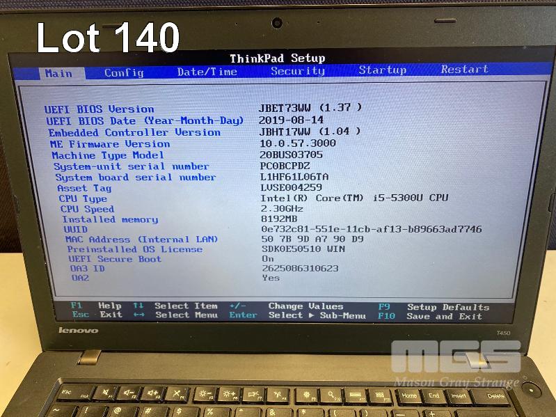 LAPTOP, LENOVO THINKPAD T450 (20BUS03705), CORE i5 5300U (5TH GEN) @ 2.3GHz, 8GB DDR3 RAM, 275GB SSD, 14" WIDESCREEN (1366x768), INTEL HD VIDEO, Wi-Fi, BLUETOOTH, WINDOWS 10 PRO INSTALLED & POWER SUPPLY S/N:PC0BCPDZ