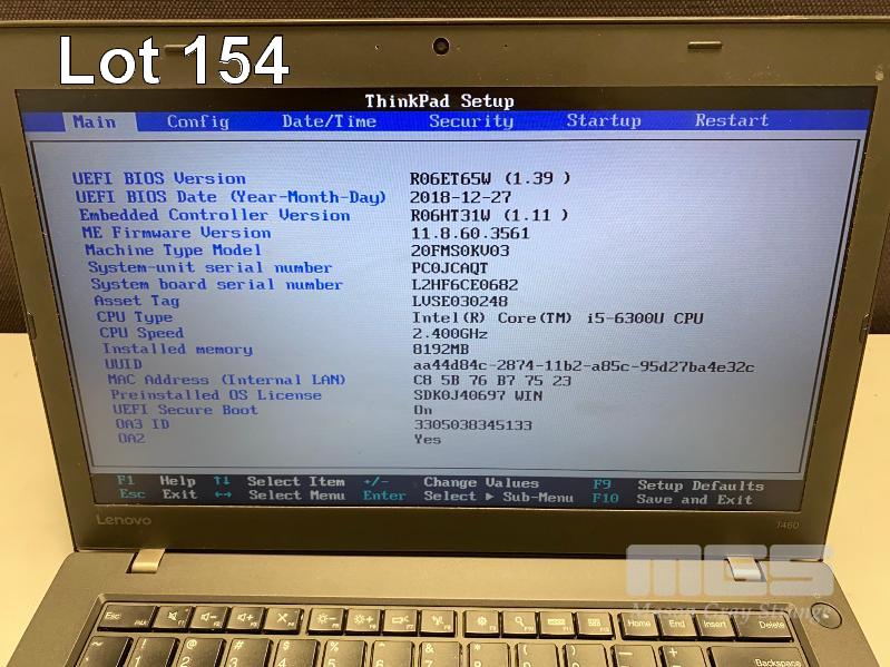 LAPTOP, LENOVO THINKPAD T460 (20FMS0KV03), CORE i5 6300U (6TH GEN) @ 2.4GHz, 8GB DDR3 RAM, 256GB SSD, 14" WIDESCREEN (1366x768), INTEL HD VIDEO, Wi-Fi, BLUETOOTH, WINDOWS 10 PRO INSTALLED & POWER SUPPLY S/N:PC0JCAQT
