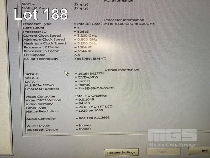 ALL-IN-ONE PC, DELL OPTIPLEX 7440, CORE i5 6500 (6TH GEN) @ 3.2GHz, 8GB DDR4 RAM, 256GB SSD, DVD-RW, INBUILT 23.8" FHD WIDESCREEN (1920x1080), INTEL HD VIDEO, WEBCAM, 8 x USB, WINDOWS 10 HOME INSTALLED, KEYBOARD & MOUSE S/N:51JZSF2