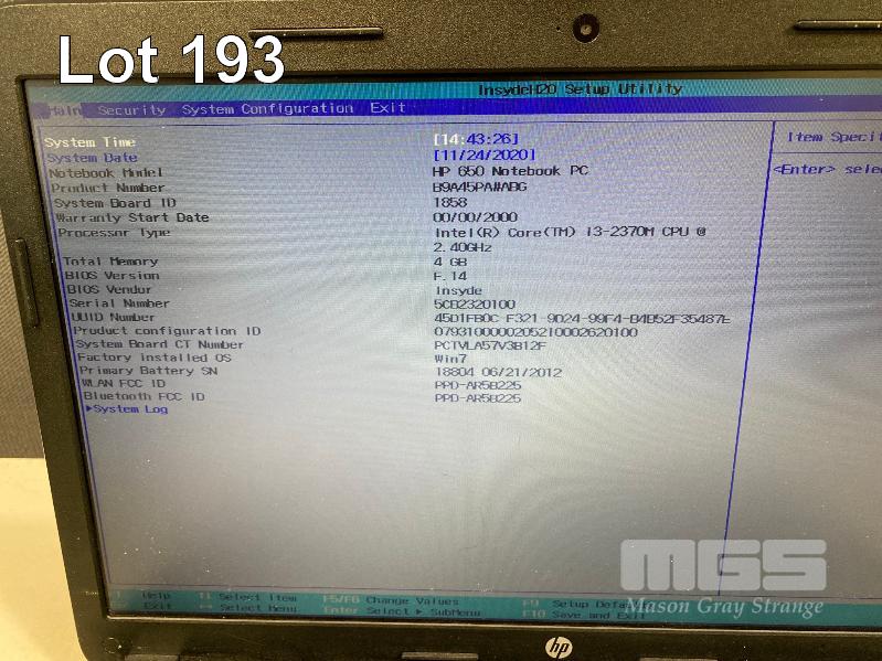LAPTOP, HP 650 (B9A45PA), CORE i3 2370M (2ND GEN) @ 2.4GHz, 4GB DDR3 RAM, 500GB SATA HDD, DVD-RW, 15.6" WIDESCREEN (1366x768), INTEL HD VIDEO, Wi-Fi, BLUETOOTH, WINDOWS 7 HOME PREMIUM INSTALLED W/ LICENSE & POWER SUPPLY S/N:5CB2320100