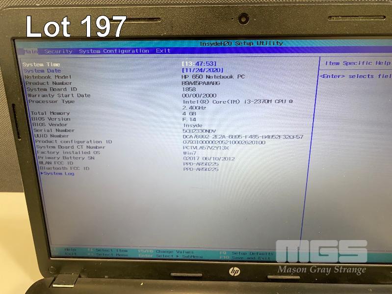 LAPTOP, HP 650 (B9A45PA), CORE i3 2370M (2ND GEN) @ 2.4GHz, 4GB DDR3 RAM, 500GB SATA HDD, DVD-RW, 15.6" WIDESCREEN (1366x768), INTEL HD VIDEO, Wi-Fi, BLUETOOTH, WINDOWS 7 HOME PREMIUM INSTALLED W/ LICENSE & POWER SUPPLY S/N:5CB2330NDV