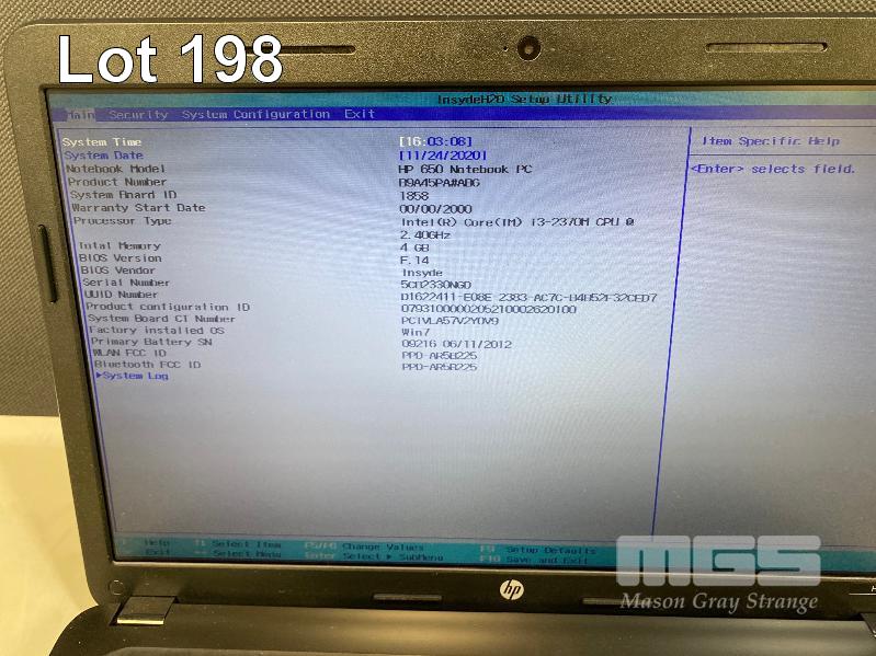 LAPTOP, HP 650 (B9A45PA), CORE i3 2370M (2ND GEN) @ 2.4GHz, 4GB DDR3 RAM, 500GB SATA HDD, DVD-RW, 15.6" WIDESCREEN (1366x768), INTEL HD VIDEO, Wi-Fi, BLUETOOTH, WINDOWS 7 HOME PREMIUM INSTALLED W/ LICENSE & POWER SUPPLY S/N:5CB2330NGD