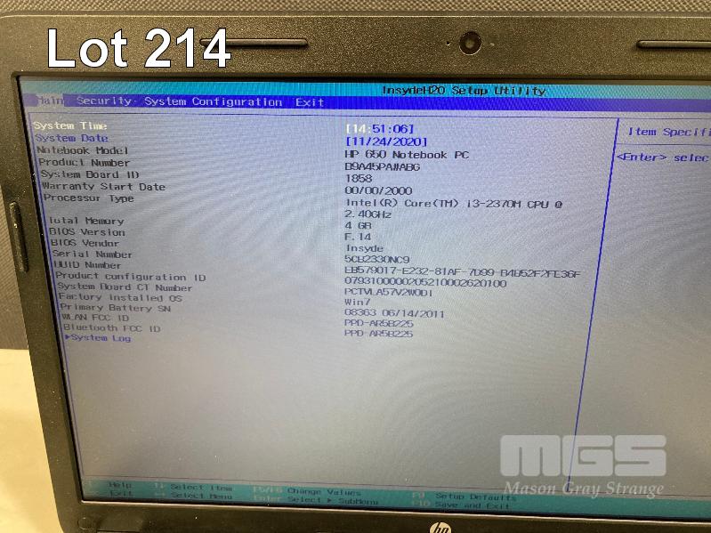 LAPTOP, HP 650 (B9A45PA), CORE i3 2370M (2ND GEN) @ 2.4GHz, 4GB DDR3 RAM, 500GB SATA HDD, DVD-RW, 15.6" WIDESCREEN (1366x768), INTEL HD VIDEO, Wi-Fi, BLUETOOTH, WINDOWS 7 HOME PREMIUM INSTALLED W/ LICENSE & POWER SUPPLY S/N:5CB2330NC9