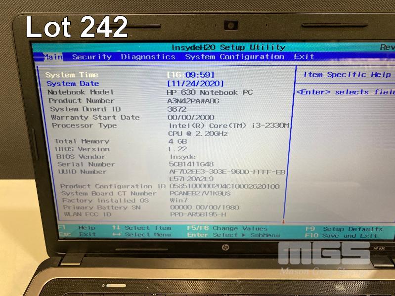 LAPTOP, HP 630 (A3N42PA), CORE i3 2330M (2ND GEN) @ 2.2GHz, 4GB DDR3 RAM, 500GB SATA HDD, DVD-RW, 15.6" WIDESCREEN (1366x768), INTEL HD VIDEO, Wi-Fi, BLUETOOTH, WINDOWS 7 HOME PREMIUM INSTALLED W/ LICENSE & POWER SUPPLY (NOTE: BATTERY NOT CHARGING) S/N:5CB1411G48
