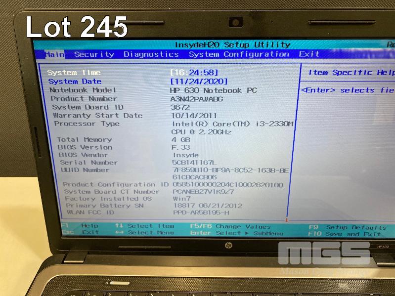 LAPTOP, HP 630 (A3N42PA), CORE i3 2330M (2ND GEN) @ 2.2GHz, 4GB DDR3 RAM, 500GB SATA HDD, DVD-RW, 15.6" WIDESCREEN (1366x768), INTEL HD VIDEO, Wi-Fi, BLUETOOTH, WINDOWS 7 HOME PREMIUM INSTALLED W/ LICENSE & POWER SUPPLY (NOTE: BATTERY NOT CHARGING) S/N:5CB1411G7L