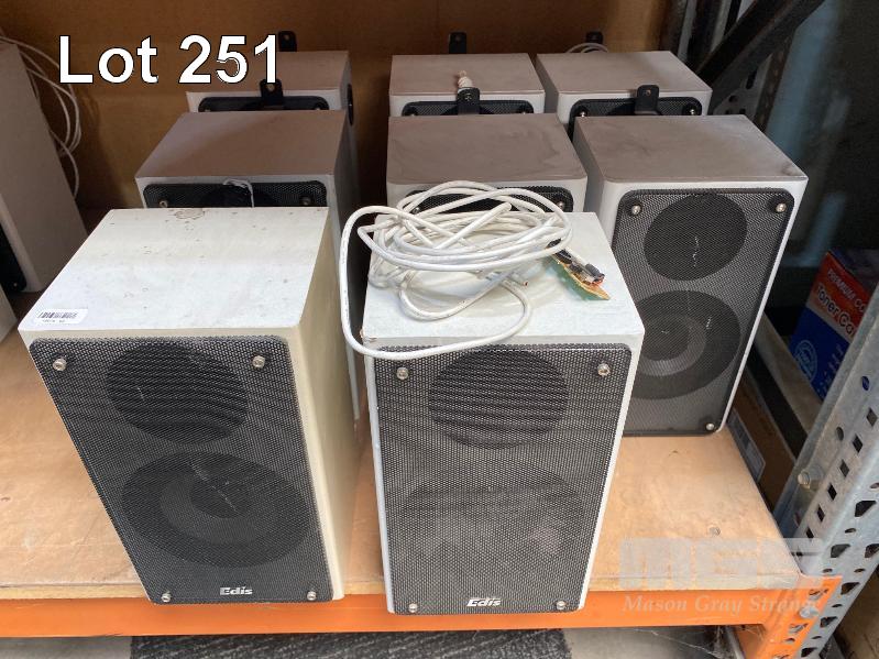 4 x PAIR EDIS EA015 ACTIVE SPEAKERS (DAMAGED / CUT LINE CONTROL) (NO CABLES)