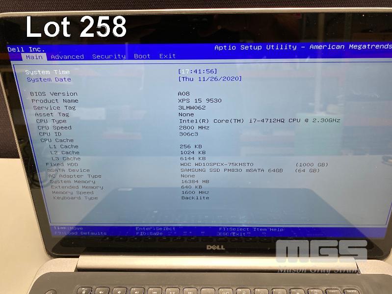LAPTOP, DELL XPS 15 9530, CORE i7 4712HQ (4TH GEN) @ 2.3GHz, 16GB DDR3 RAM, 1TB SATA HDD, 64GB SSD, 15.6" 4K TOUCHSCREEN (3840x2160), 2GB NVIDIA GEFORCE GT 750M VIDEO, Wi-Fi, BLUETOOTH, WINDOWS 10 HOME INSTALLED & POWER SUPPLY (NOTE: WHITE SPOT SCREEN BLEMISHES, BOTTOM OF SCREEN CUT-OFF, CRACKLINE ON CASING, SOME KEYS HARD TO PRESS) S/N:3LMW062