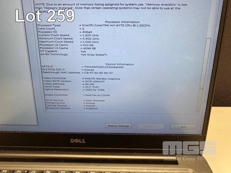 LAPTOP, DELL LATITUDE E7370, CORE m7-6Y75 @ 1.2GHz, 16GB DDR3 RAM, 512GB M.2 SSD, 13.3" WIDESCREEN (1920x1080), INTEL HD VIDEO, Wi-Fi, BLUETOOTH, WINDOWS 10 PRO INSTALLED & USB-C POWER SUPPLY (NOTE: KEYBOARD ISSUES, SOME KEYS FAULTY) S/N:FL47ZF2