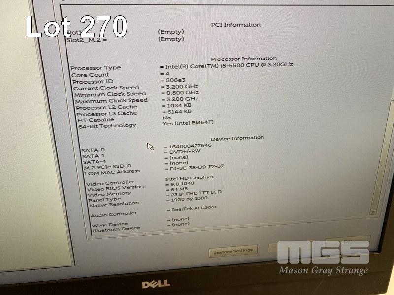 ALL-IN-ONE PC, DELL OPTIPLEX 7440, CORE i5 6500 (6TH GEN) @ 3.2GHz, 8GB DDR4 RAM, 256GB SSD, DVD-RW, INBUILT 23.8" FHD WIDESCREEN (1920x1080), INTEL HD VIDEO, WEBCAM, 8 x USB, WINDOWS 10 HOME INSTALLED, KEYBOARD & MOUSE S/N:9L33LG2