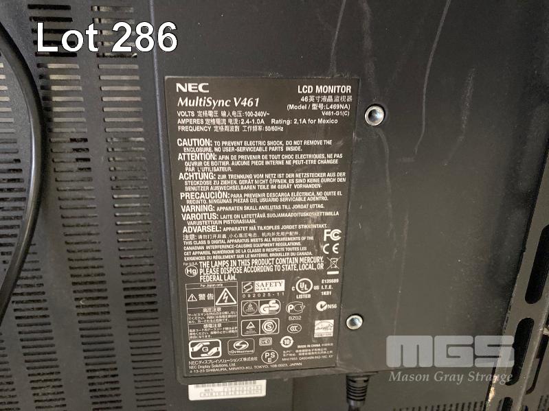 MONITOR, NEC MULTISYNC V461 46" COMMERCIAL LCD DISPLAY, HDMI WITH VOGEL'S SWIVEL HANGING MOUNT BRACKET (NO REMOTE, NO STAND)
