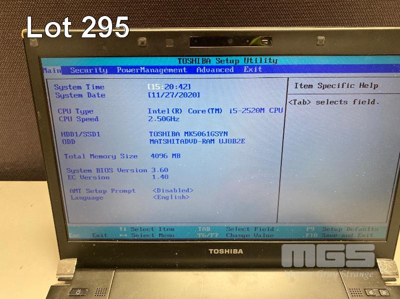 LAPTOP, TOSHIBA PORTEGE R830 (PT321A-01K00201), CORE i5 2520M (2ND GEN) @ 2.5GHz, 4GB DDR3 RAM, 500GB SATA HDD, DVD-RW, 13.3" WIDESCREEN (1366x768), INTEL HD VIDEO, Wi-Fi, BLUETOOTH, WINDOWS 7 PRO INSTALLED W/ LICENSE & POWER SUPPLY S/N:3C041012H