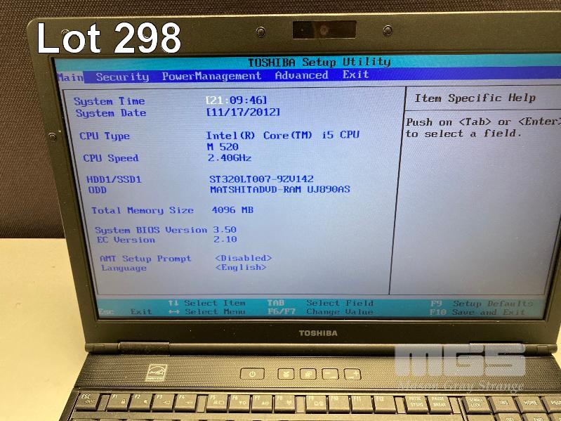 LAPTOP, TOSHIBA TECRA A11 (PTSE1A-00L005), CORE i5 M520 @ 2.4GHz, 4GB DDR3 RAM, 320GB SATA HDD, DVD-RW, 15.6" WIDESCREEN (1600x900), INTEL HD VIDEO, Wi-Fi, WINDOWS 7 PRO INSTALLED W/ LICENSE & POWER SUPPLY S/N:4A023334H