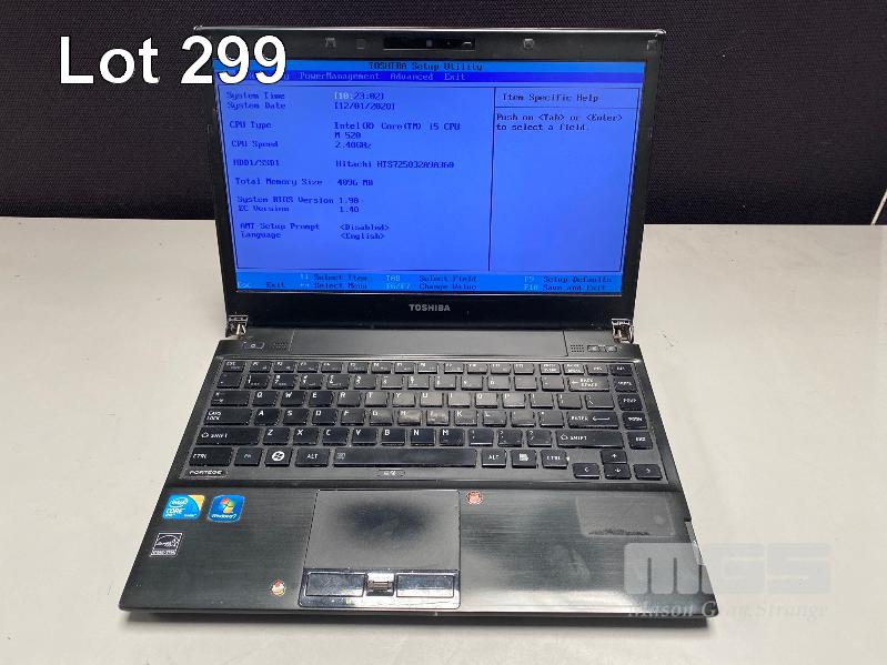 LAPTOP, TOSHIBA PORTEGE R700 (PT311A-00J00Q), CORE i5 M520 @ 2.4GHz, 4GB DDR3 RAM, 320GB SATA HDD, DVD-RW, 13.3" WIDESCREEN & POWER SUPPLY (NOTE: MISSING SCREEN HINGE COVERS, DVD DRIVE FAULTY) S/N:6A105691H