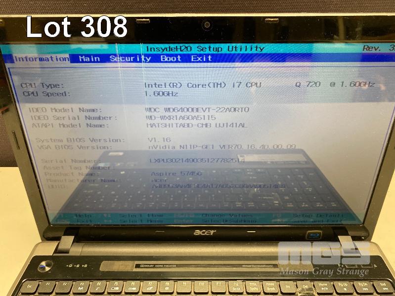 LAPTOP, ACER ASPIRE 5745G, CORE i7 Q720 @ 1.6GHz, 8GB DDR3 RAM, 640GB SATA HDD, BLU-RAY, 15.6" WIDESCREEN, Wi-Fi, WINDOWS 10 HOME INSTALLED & POWER SUPPLY (NOTE: LINES ON SCREEN, "BACKPSCAE" KEY LOOSE) S/N:03507564025