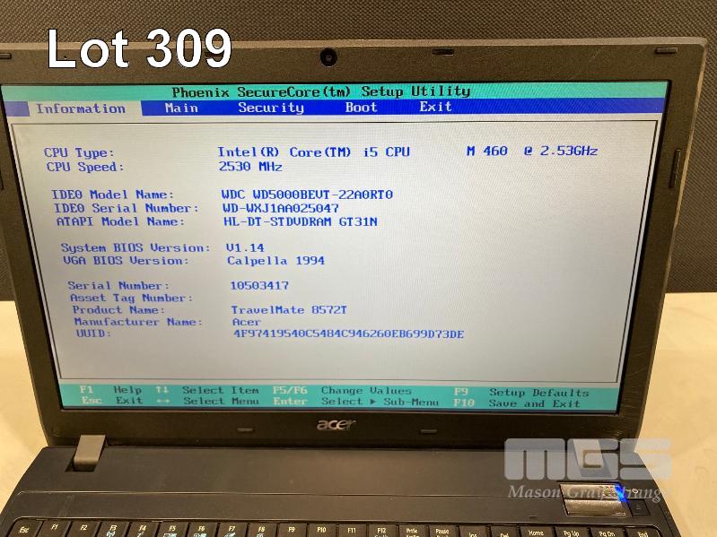 LAPTOP, ACER TRAVELMATE 8572T, CORE i5 M460 @ 2.53GHz, 4GB DDR3 RAM, 500GB SATA HDD, DVD-RW, 15.6" WIDESCREEN (1366x768), INTEL HD VIDEO, Wi-Fi, BLUETOOTH, WINDOWS 7 HOME PREMIUM INSTALLED W/ LICENSE & POWER SUPPLY (NOTE: SCRATCHES ON CASING & SCREEN) S/N:10503417
