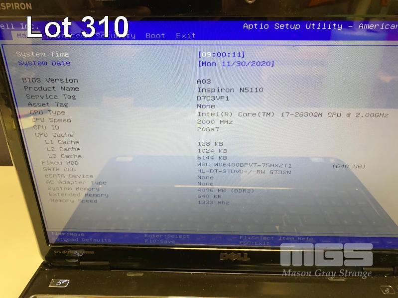 LAPTOP, DELL INSPIRON N5110, CORE i7 2630QM (2ND GEN) @ 2GHz, 4GB DDR3 RAM, 640GB SATA HDD, DVD-RW, 15.6" WIDESCREEN (1366x768), 1GB NVIDIA GEFORCE GT 525M VIDEO, Wi-Fi, WINDOWS 7 HOME PREMIUM INSTALLED W/ LICENSE & POWER SUPPLY (NOTE: SCREEN FRAME LOOSE, SCRATCHES ON CASING) S/N:D7C3VP1