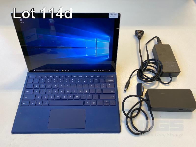 TABLET PC, MICROSOFT SURFACE PRO 4, MODEL 1724, CORE i5 6300U (6TH GEN) @ 2.4GHz, 8GB RAM, 256GB SSD, 12.3" TOUCHSCREEN, Wi-Fi, WINDOWS 10 PRO INSTALLED, KEYBOARD TYPE COVER, SURFACE DOCK (1661) WITH DOCK POWER SUPPLY (1749)