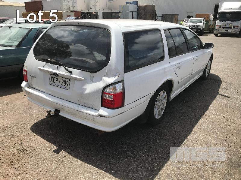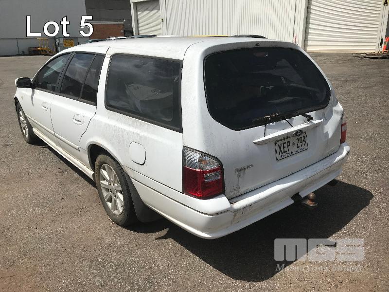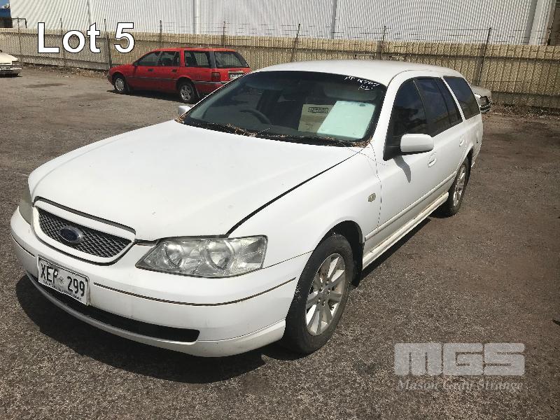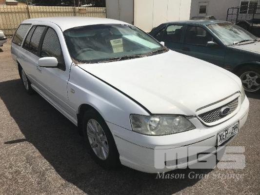 2004 FORD BA FALCON FUTURA STATION WAGON REG: XEP 299 (SA) VIN: 6FPAAAJGWA4B61803 ODO: UNKNOWN 4 LITRE 6 CYLINDER, 4 SPEED AUTO, PETROL, WHITE, 5 DOORS, 5 SEAT, AIR BAG, AIR CON, ALLOY WHEELS, CD PLAYER, CENTRAL LOCKING, CRUISE CONTROL, POWER STEERING, POWER WINDOWS, TOW BAR (NO PAPERS, NO KEYS, NO OWNER'S MANUAL, NO SERVICE BOOKS) CONDITION: REAR DOOR - DENTED PAINTWORK - POOR INTERIOR - DIRTY