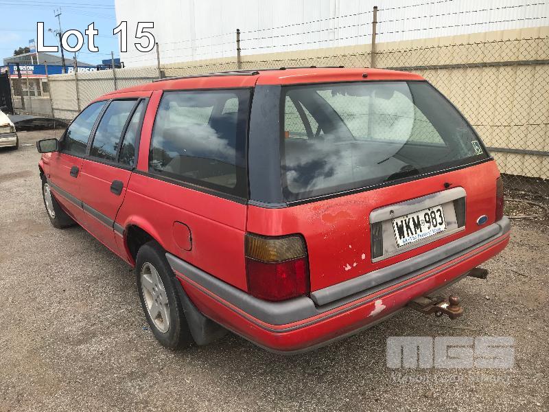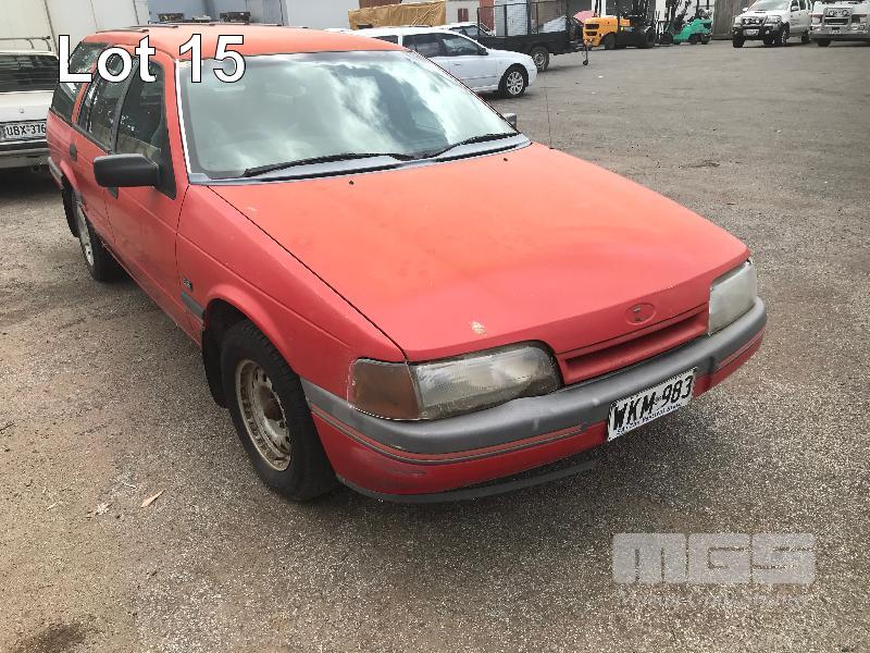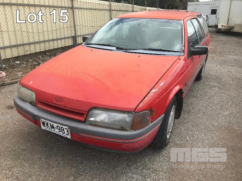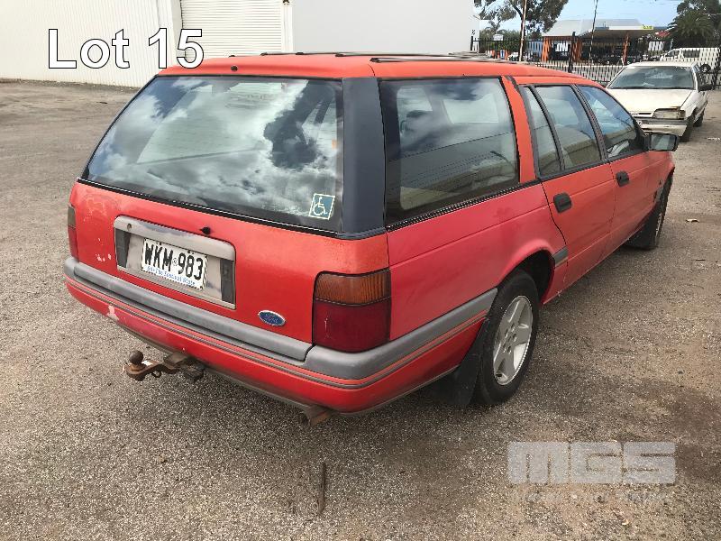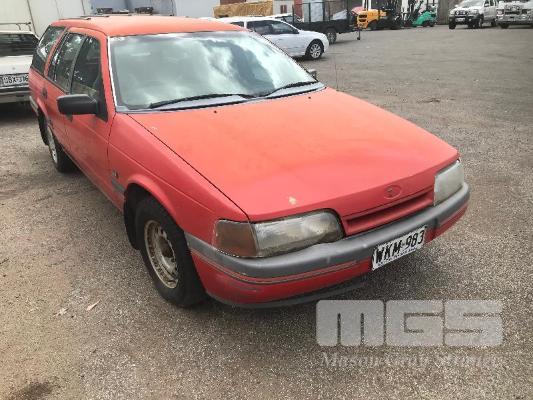 1988 FORD EA FALCON STATION WAGON REG: WKM 983 (SA) VIN: JG26JE41076T ODO: 198,753 kms SHOWING 3.9 LITRE 6 CYLINDER, 4 SPEED AUTO, PETROL, RED, 5 DOORS, 5 SEAT, AIR CON, POWER STEERING, TOW BAR (NO PAPERS, NO KEYS, NO OWNER'S MANUAL, NO SERVICE BOOKS) CONDITION: PAINTWORK - POOR CONDITION INTERIOR - POOR CONDITION